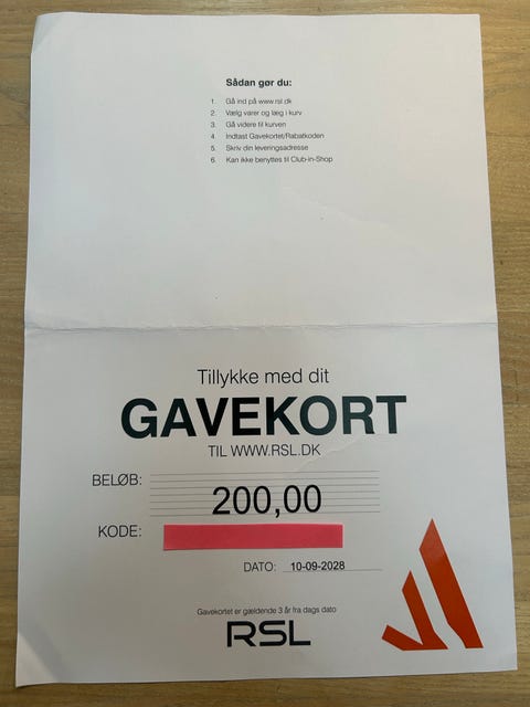 RSL Gavekort