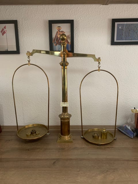 Gl Købmandsvægr i messing
