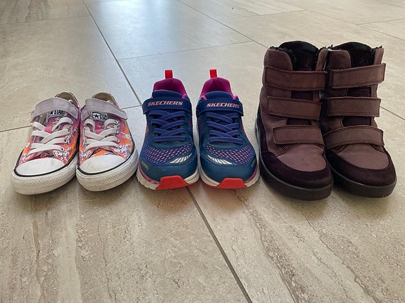 Kvalitetssko er ofte ret dyre. Brugt kan du få f.eks. vinterstøvler til en lavere pris, og du kan endda købe et ekstra par vinterstøvler til de morgener, hvor støvlerne ikke har nået at tørre efter leg i sneen. Mellemsæsonsko, børnesneakers og gummistøvler bliver hurtigt for små, efterhånden som børnene vokser. Har du planer om at købe brugte børnesko, skal du tjekke skoenes stand i annoncen og se størrelsesskemaet på producentens hjemmeside.