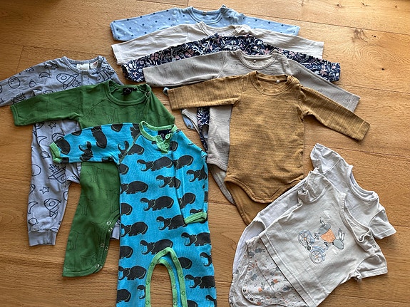 Du bør have nok børnetøj til, at du ikke behøver at starte vaskemaskinen konstant. Overvej om du kan købe noget brugt: For eksempel bliver babybodyer let snavsede, og det er godt at have rigeligt af dem i en familie med babyer. Smukke børnetrøjer og kjoler bliver ofte for små efter kun enkelte brug, og det er godt at sælge dem og dermed forlænge tøjets levetid. Hvad angår overtøj, kan vinter- og mellemsæsonens overtræksdragter eksempelvis købes brugt, da særligt overtræksdragter fra kvalitetsmærker tåler flere børns kravlen og tumlen i sne og sjap.