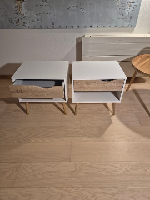Flotte retro sengeborde i teaktræ