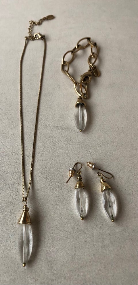 Et smykkesæt inkluderer ofte en halskæde og øreringe, og muligvis også et armbånd eller en ring. Delene i et smykkesæt passer naturligvis sammen og giver dit outfit et komplet look. Tjek DBA's 2.030 annonce(r) og se, om du kan finde det perfekte smykkesæt.