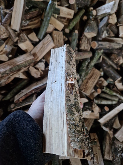 Tørt kløvet birke træ!