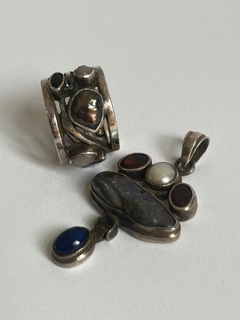 Sølv emalje smykkesæt