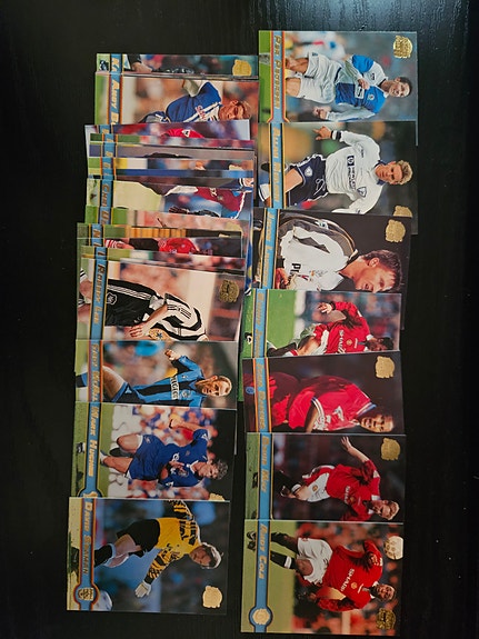 Pose med fodboldkort