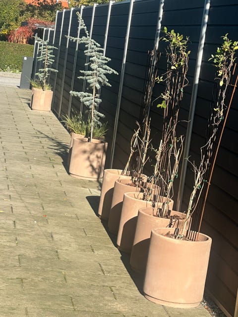 7 krukker med træer.