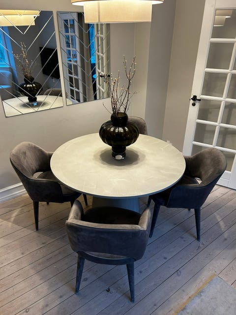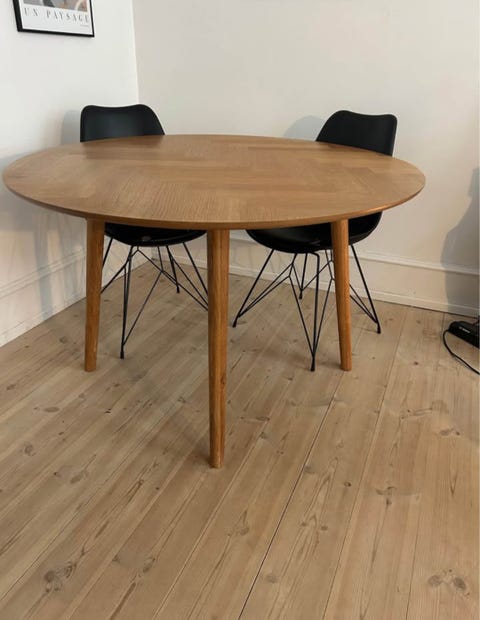 Rundt spisebord med sildebensmønster
