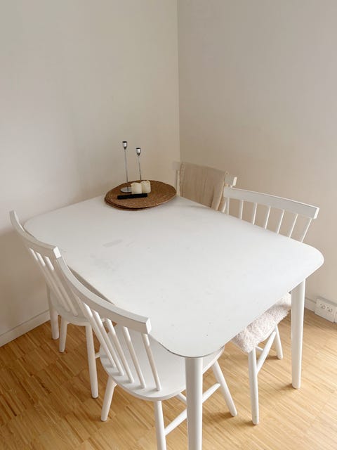 Nyt rundt spisebord med 4 nye stole.