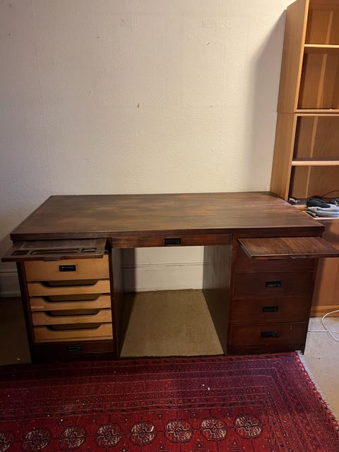 Ældre skrivebord i træ. Kom og hent