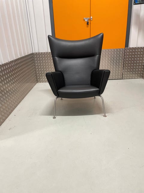 Wing chair sort elegance læder