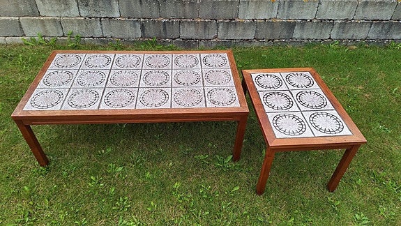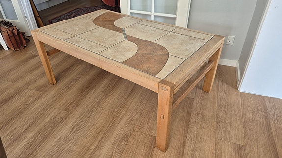 Lækkert sofabord i egetræ med kakler