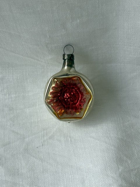 Fin gammel julepynt i glas.