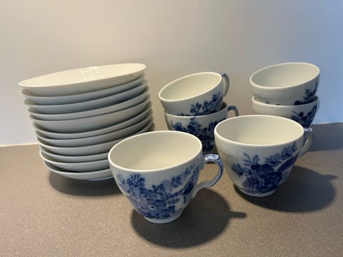 Royal Copenhagen Musselmalet Riflet espresso Kaffekop Sæt Blå og Hvid Porcelæn