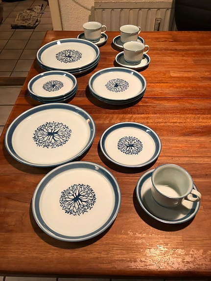 Royal Copenhagen Musselmalet Riflet Porcelæn Tallerken og Skål Sæt Blå og Hvid
