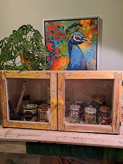 💚 VITRINESKAB, RETRO, FYRRETRÆ.