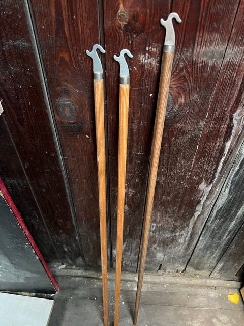 Strikkepinde, Træ og metal.