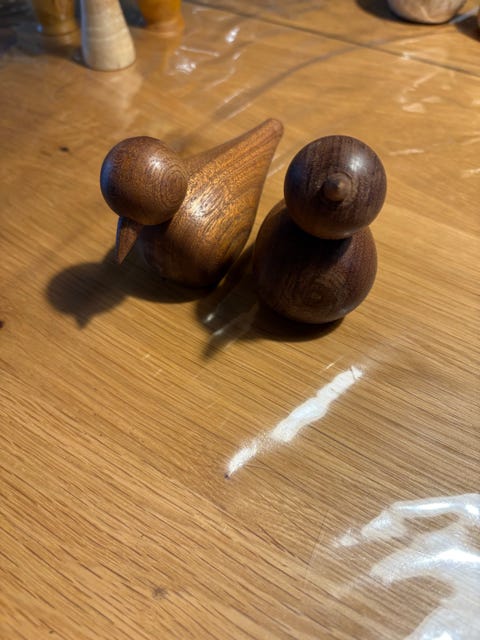 Håndlavet fuglepar i træ