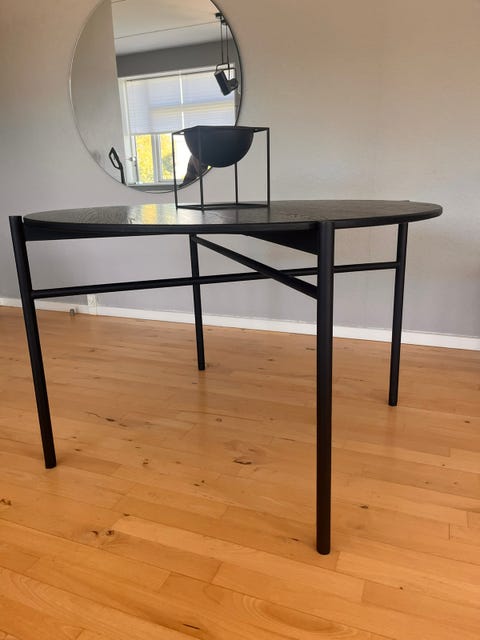 Spisebord i sort træt med metal ben