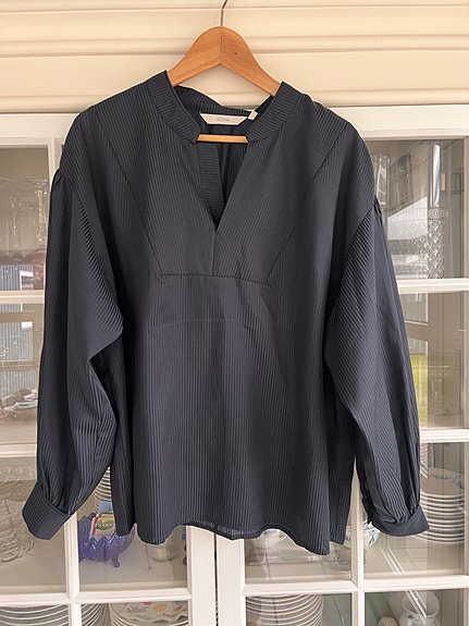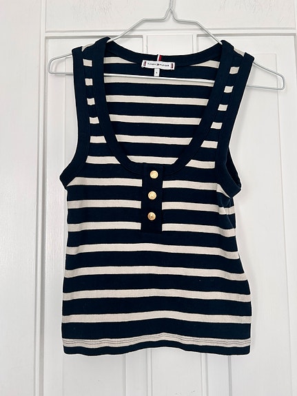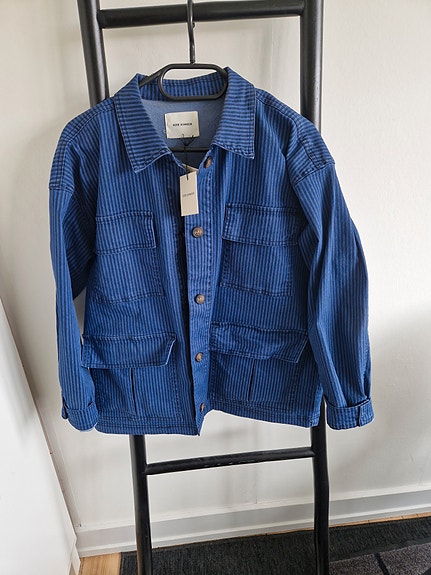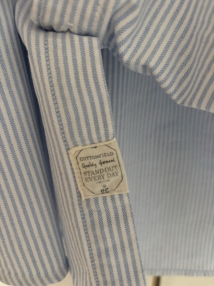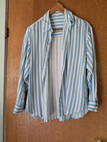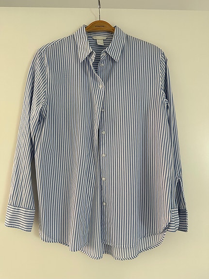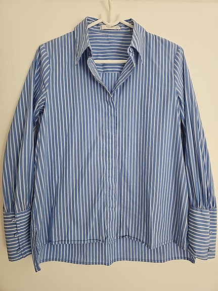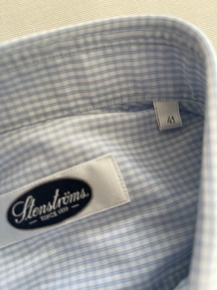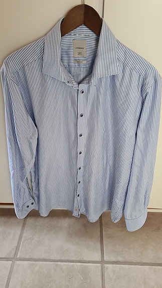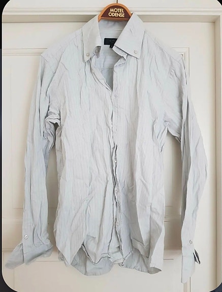Tiger of Sweden stribet skjorte i lysblå og hvid, str. L slim-fit stretch