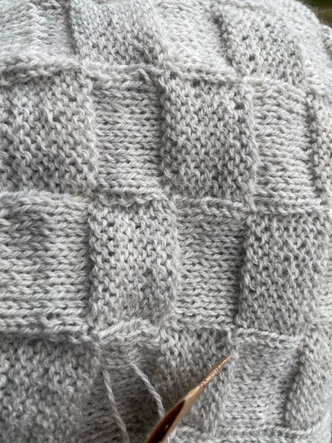 Håndstrikket Tæppe i grå uld