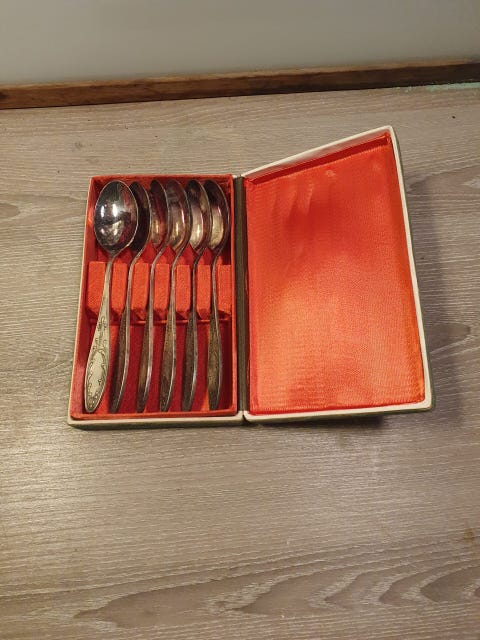 5 teskeer, sølvplet