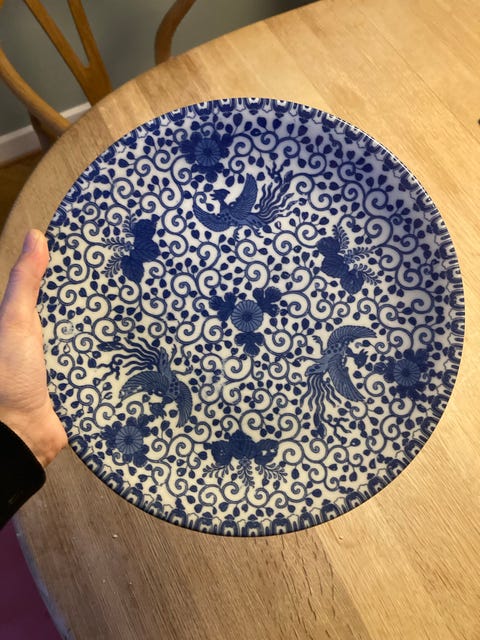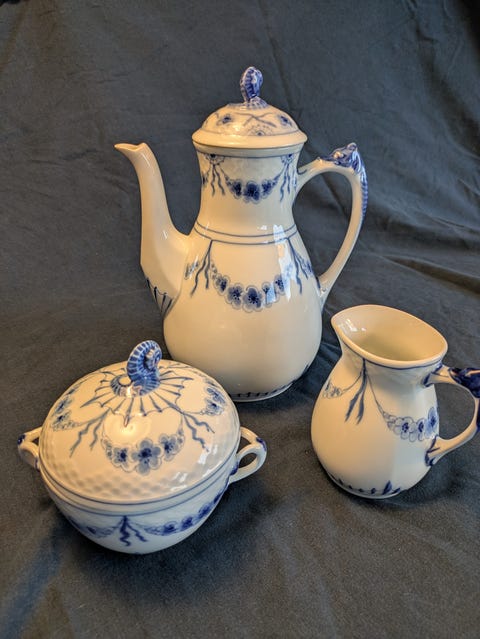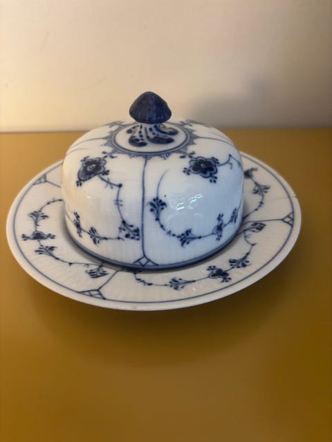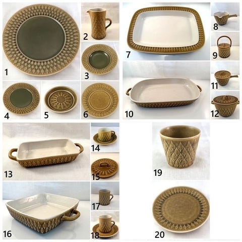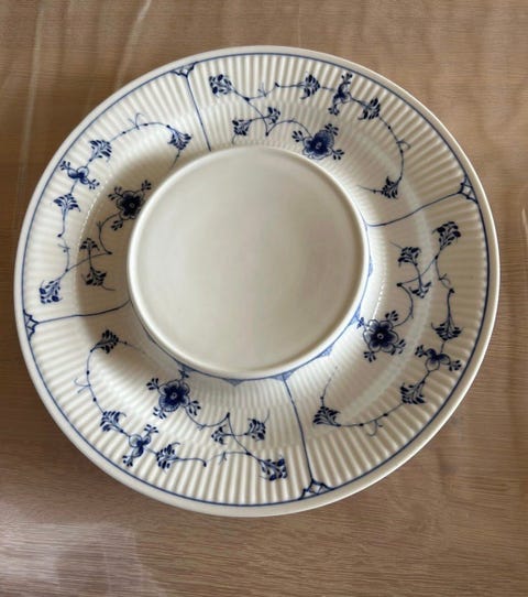 Mågestel - Middags-, frokost-, dyb tallerken samt fade - Mågestel med guldkant