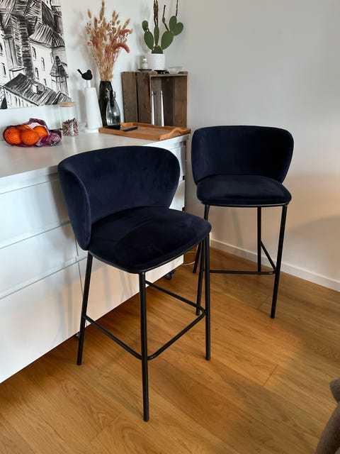 Barstole i mørkeblå velour