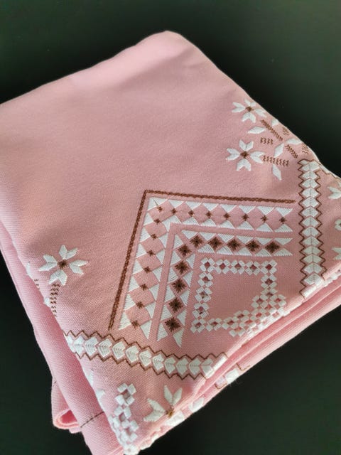 Håndbroderet fejlfri dug.
