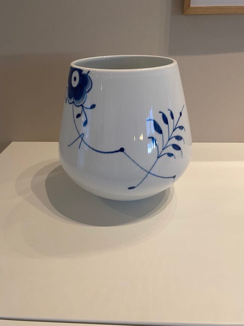 Lille dyb tallerken i Musselmalet, Riflet med tyk kant fra Royal Copenhagen.