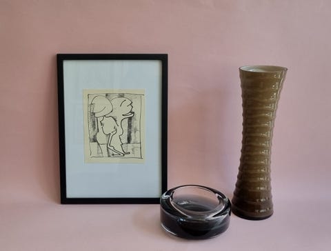 Glas skål og indrammet tryk