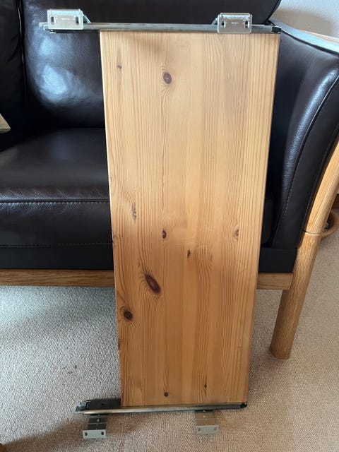 Fyrretræshylde med udtræk.