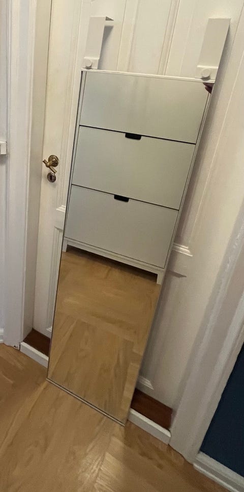 Spejl som kan stå på gulvet