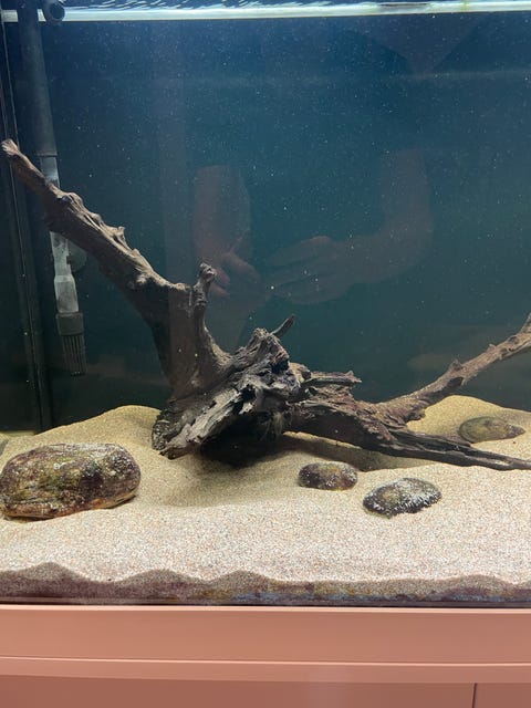 Akvarium med planter og sten