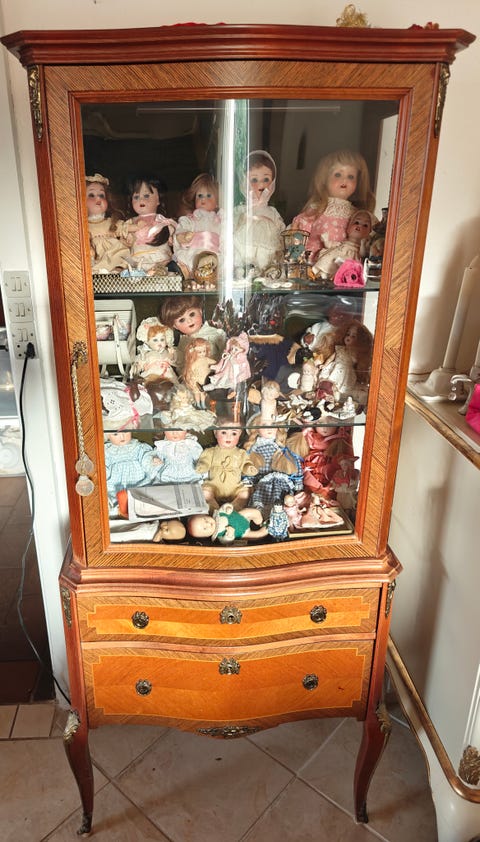 Glasvitrineskab i træ med glaslåger