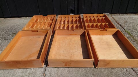 Reol med skuffer.