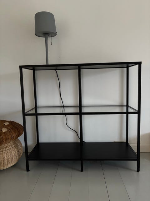 Hylde med glasskuffer