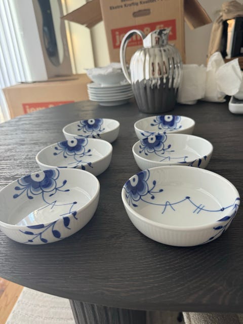 Royal Copenhagen Musselmalet Riflet kageTallerken Sæt Blå og Hvid Porcelæn