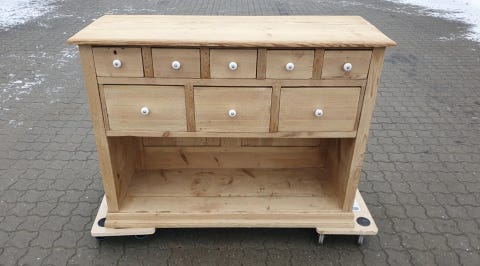 💚 KØBMANDSDISK, SKÆNK ANTIK FYRRETRÆ