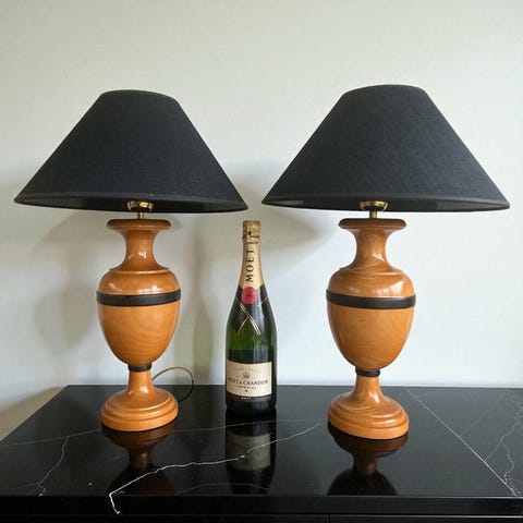 Lampebord - Løvtræ - Brunt lædertop