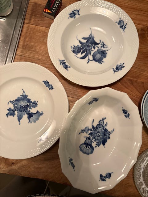 Royal Copenhagen Tallerken og fade sæt i porcelæn med sort blomsterdekoration