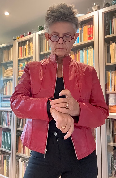 Rød skindjakke