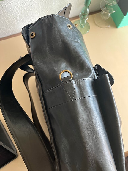 Sort læder skole rygsæk