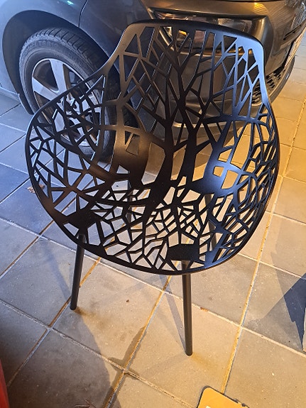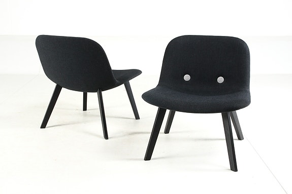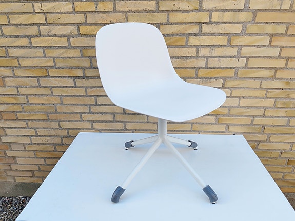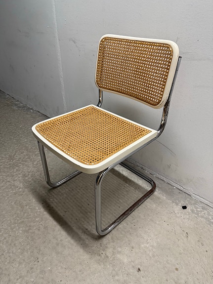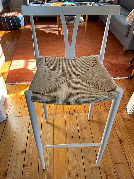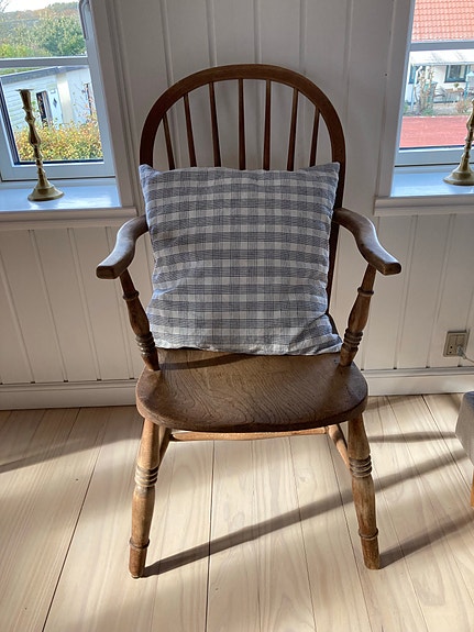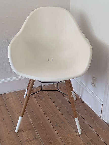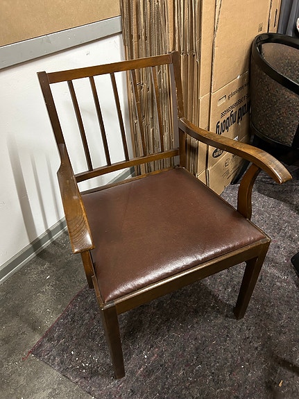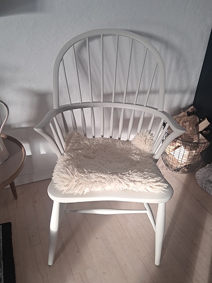 Syver stol 3107, nypolstret i cognac semianilin læder. Med armlæn og sort stel