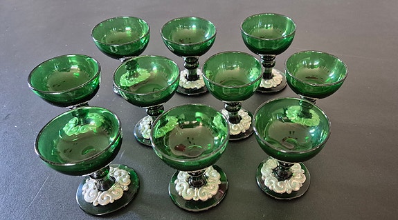 Antikke grønne snapseglas