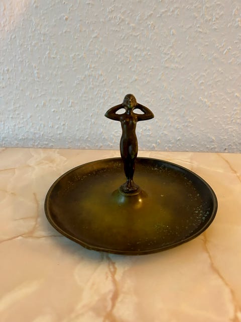 Bronze fad med kvinde