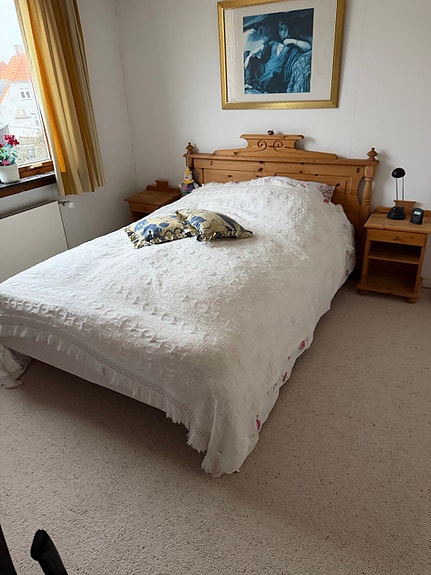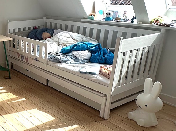 Stor seng i tre, hvid creme farve