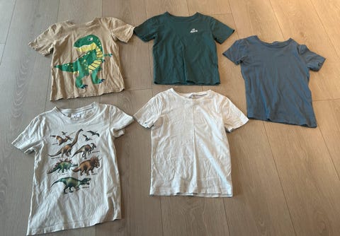 Som voksne med børn ved, er lyden af vaskemaskinen en fast del af hverdagen. T-shirts, skjorter og toppe skal, ligesom mange andre beklædningsgenstande, opbevares i store mængder i garderoben, så vaskemaskinen ikke skal køre konstant. Når du køber brugte skjorter og toppe, er den samlede pris billigere. Børnetrøjer er ofte lavet af bomuld. En brugt bomulds-t-shirt kan være særligt behagelig for et barn med sart hud, da den ofte føles blødere.