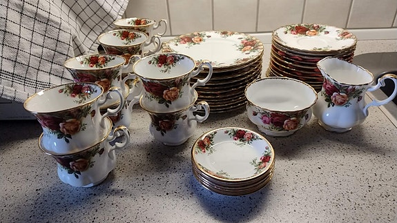 Landsbyrose kaffestel, fade & skåle