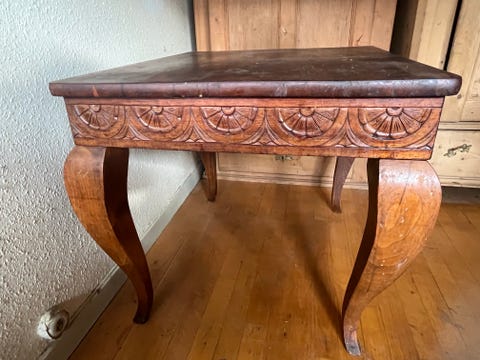 Smukt håndskåret træbord