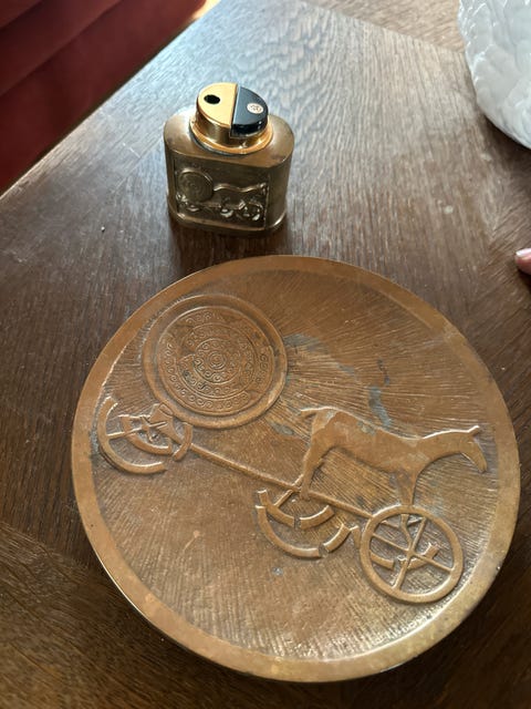 Bronze platte med solvogn